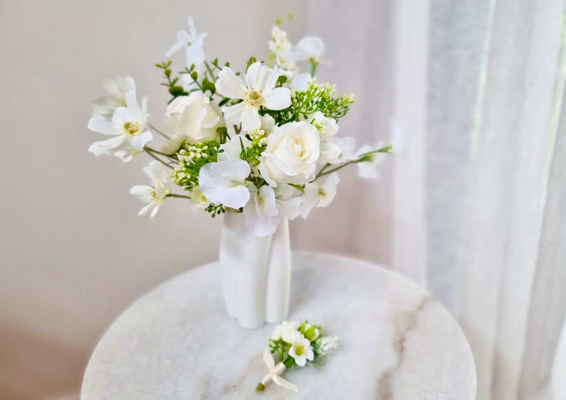 This elegant floral package is perfect for a low-key wedding or elopement. Includes: 1 x white...
