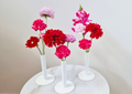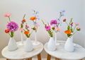 Our artificial flower bud vases are an affordable way to elevate your tablescape and super easy set-up for a gorgeous wedding, cozy party or celebration! Includes 3 vases and 3-5 flowers per vase. Our 3D printed vases can be reused to hold faux/dried flowers and are 100% biodegradable. Due to the nature of 3D printed items, the vases are very light and perfect for transportation to your event.